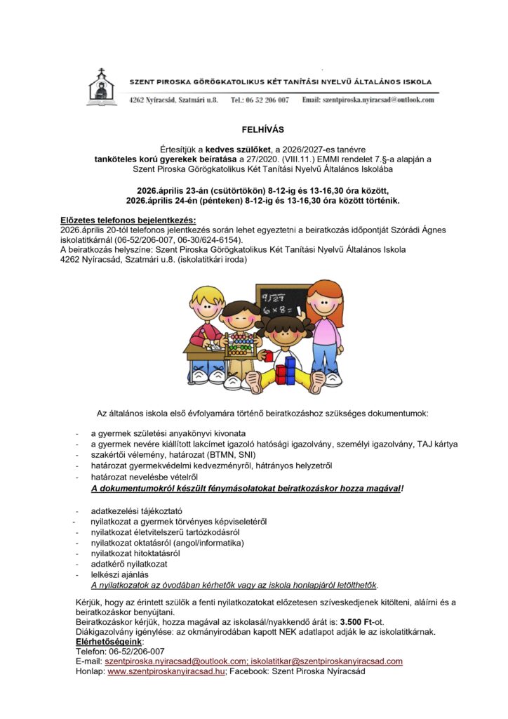 Beiratkozás a 2026/27-es tanévre