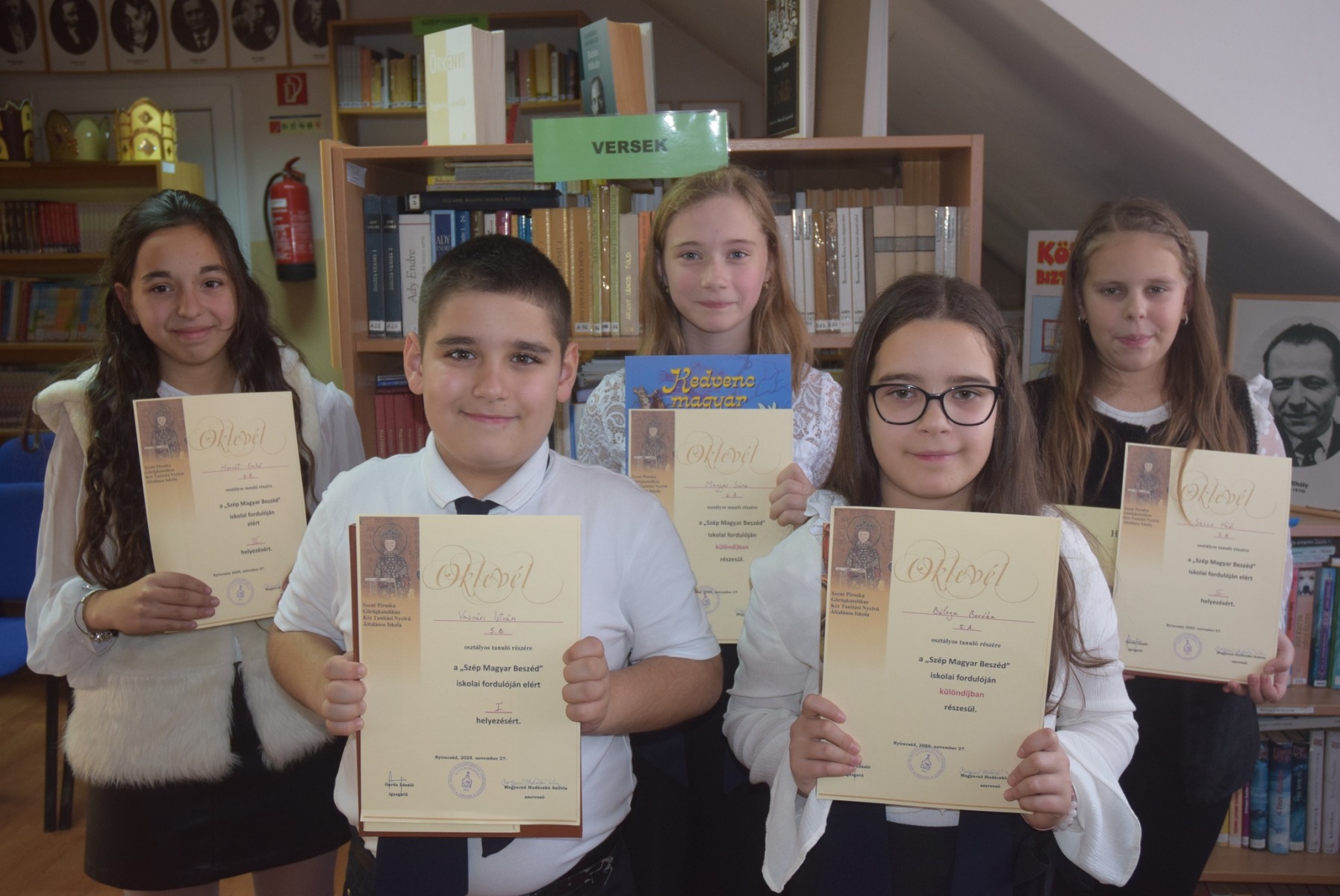 A mai délutánon arról adtak számot diákjaink, ki, mennyire van birtokában csodálatos anyanyelvünk helyes használatának, a szép magyar beszédnek. A Kazinczy nevéhez fűződő versenyen 5-6., valamint 7-8. évfolyamos kategóriában mérették meg magukat tanulóink. Minden versenyző egy szabadon választott, előre gyakorolt, valamint egy helyben kapott, vagyis idegen szöveg felolvasásával bizonyíthatta, mennyire tudja helyesen alkalmazni a hangsúly, a hanglejtés, a beszédtempó szövegre vonatkozó szabályait, mennyire pontos az idegen szöveg olvasása, és hogy sikerült-e azt megérteni a rövidke felkészülés alatt. A verseny szervezője és lebonyolítója Magyarné Hudácskó Szilvia magyartanár, munkaközösség-vezető volt. Gratulálunk minden versenyzőnek és a felkészítő tanároknak.