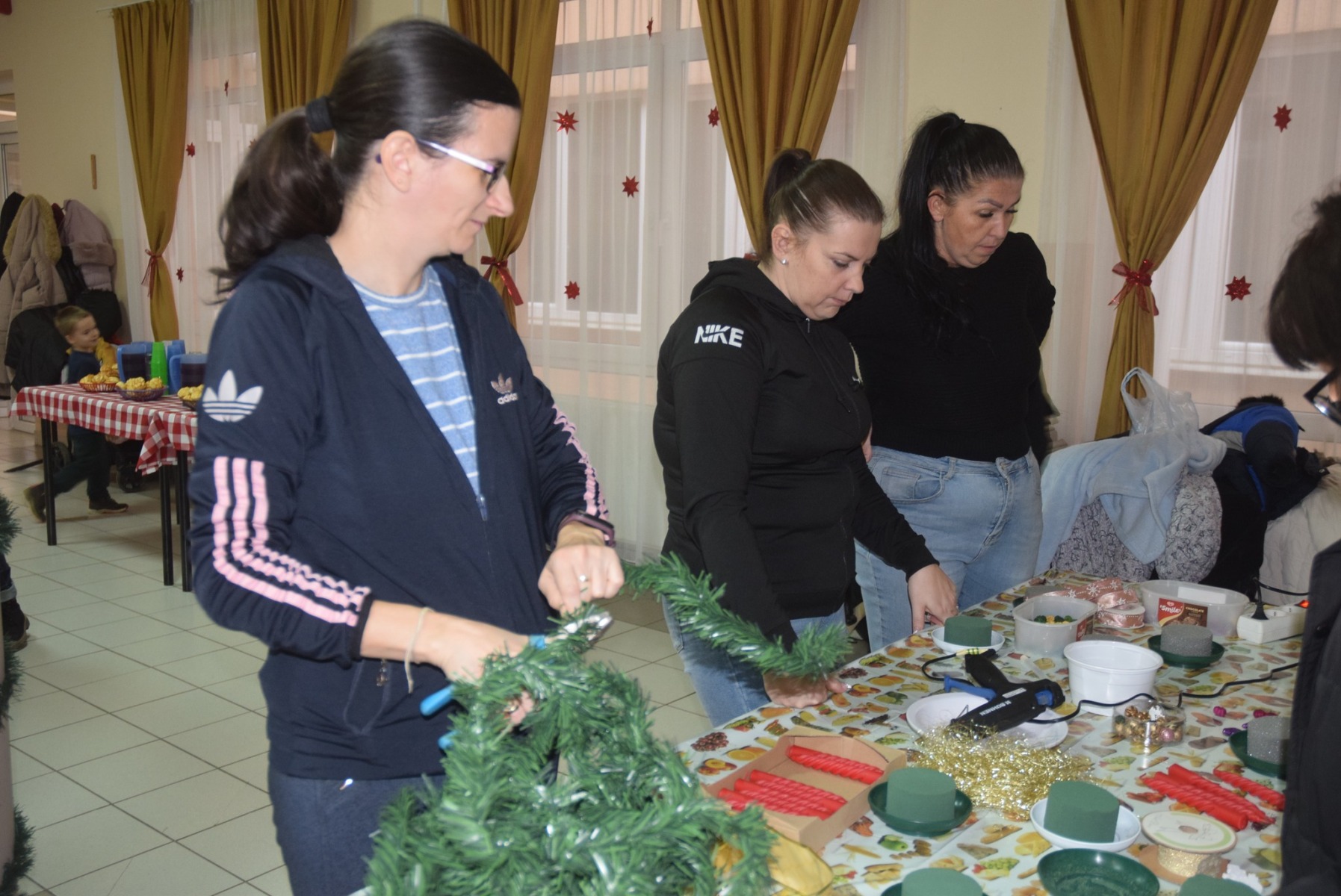 November utolsó péntekjének délutánján a nagycsoportos óvodások, a jövő évi kis elsősök látogattak el iskolánkba, hogy együtt hangolódjanak a tanító nénikkel a közelgő ünnepre. A vendégeket Magyar Mária igazgató-helyettes köszöntötte, aki röviden bemutatta iskolánkat, az itt folyó angol és informatika tagozatos munkát, a kéttannyelvű oktatást, és a leendő tanító néniket is, Bródi-Bálega Annát, Őri Tibornét, Kertiné Ternován Erzsébetet és Madarászné Mindig Erzsébetet. Ezt követően a 4.a és a 4.b osztály tanulói Bródi-Bálega Anna és Őri Tiborné tanító nénik felkészítésének köszönhetően karácsonyváró verssel és dallal kedveskedtek az óvodásoknak és szüleiknek. A kicsik már alig várták a kreatív foglalkozást, amihez hamar hozzá is láttak. A 4. évfolyamosok, a tanító nénik, no meg a szülők segítségével az ünnepkörhöz kapcsolódó témában színezhettek, ragaszthattak, majd a szülőkkel együtt minden gyerek adventi asztaldíszt is készíthetett a szebbnél-szebb kellékek segítségével. (KGYZE)