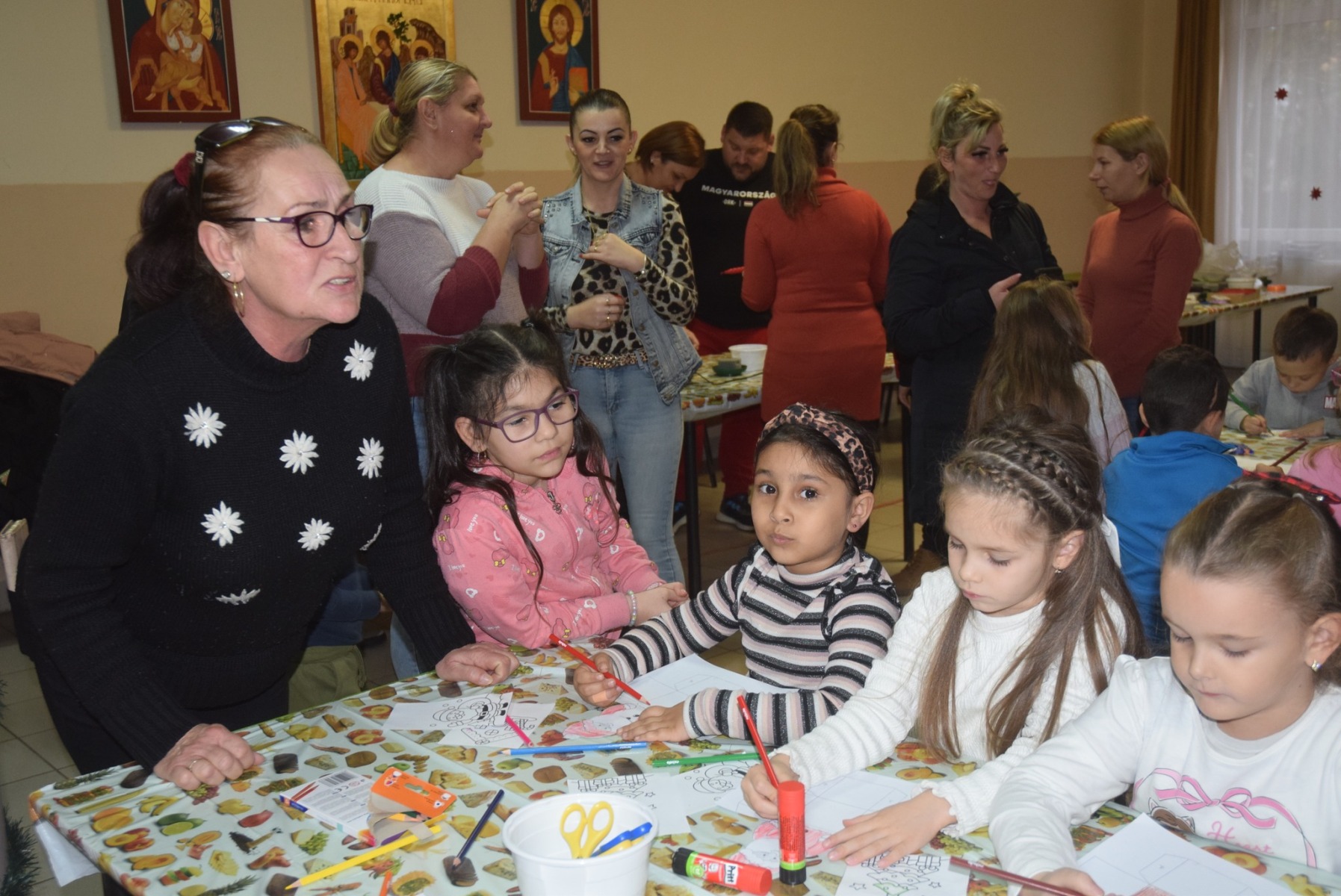 November utolsó péntekjének délutánján a nagycsoportos óvodások, a jövő évi kis elsősök látogattak el iskolánkba, hogy együtt hangolódjanak a tanító nénikkel a közelgő ünnepre. A vendégeket Magyar Mária igazgató-helyettes köszöntötte, aki röviden bemutatta iskolánkat, az itt folyó angol és informatika tagozatos munkát, a kéttannyelvű oktatást, és a leendő tanító néniket is, Bródi-Bálega Annát, Őri Tibornét, Kertiné Ternován Erzsébetet és Madarászné Mindig Erzsébetet. Ezt követően a 4.a és a 4.b osztály tanulói Bródi-Bálega Anna és Őri Tiborné tanító nénik felkészítésének köszönhetően karácsonyváró verssel és dallal kedveskedtek az óvodásoknak és szüleiknek. A kicsik már alig várták a kreatív foglalkozást, amihez hamar hozzá is láttak. A 4. évfolyamosok, a tanító nénik, no meg a szülők segítségével az ünnepkörhöz kapcsolódó témában színezhettek, ragaszthattak, majd a szülőkkel együtt minden gyerek adventi asztaldíszt is készíthetett a szebbnél-szebb kellékek segítségével. (KGYZE)
