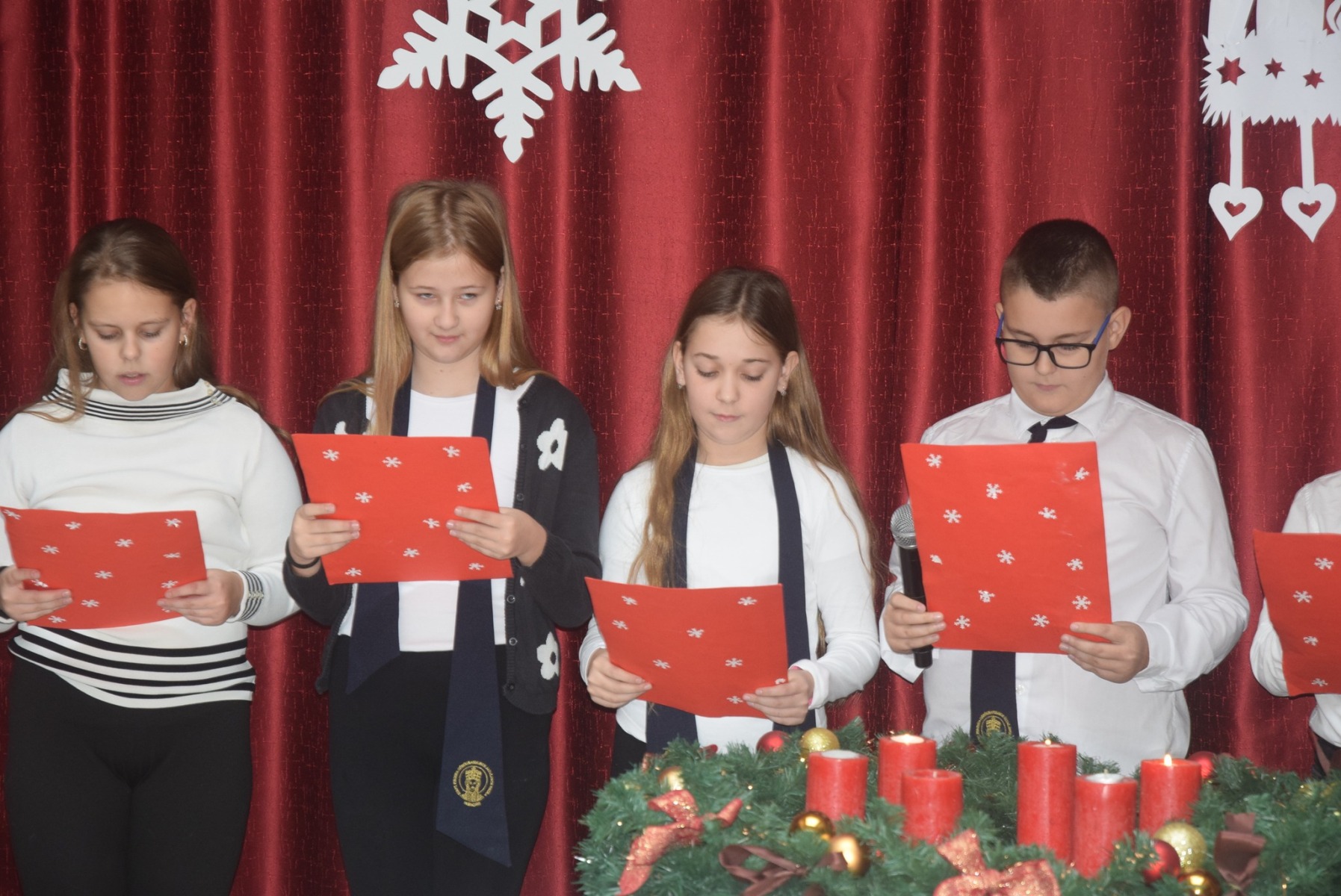 December 8-án iskolánk adventi koszorúján meggyújtottuk a várakozás idejének negyedik gyertyáját. Ezúttal az 5. évfolyamosok készültek műsorral, melynek üzenetét Teréz anya egyik szívhez szóló gondolata köré fűztek: „Ne kívánjunk magunknak nagy dolgokat, csak kis dolgokat nagy szeretettel.” A jó cselekedetekhez néha elég egy mosolyt küldeni valaki felé, vagy embertársunknak segíteni, megvigasztalni, ha szüksége van rá, vagy csak egyszerűen türelmesebbnek lenni vele. Ahhoz, hogy jót tegyünk másokkal, magunkkal, a lelkünkkel, soha nem kell nagy dolgokra gondolni, hiszen a csodák a kis dolgokban is ott vannak. A negyedik gyertyát Szücs Hédi gyújtotta meg. A műsorban szerepelt: Szücs Hédi, Nagy Csenge, Pető Luca, Kerezsi Gergő, Csontos Péter, Szőrös Petra, Bálega Boróka, Jurkovics Dóra. A gyerekeket Molnárné Tóth Andrea tanárnő készítette fel. KGYZE