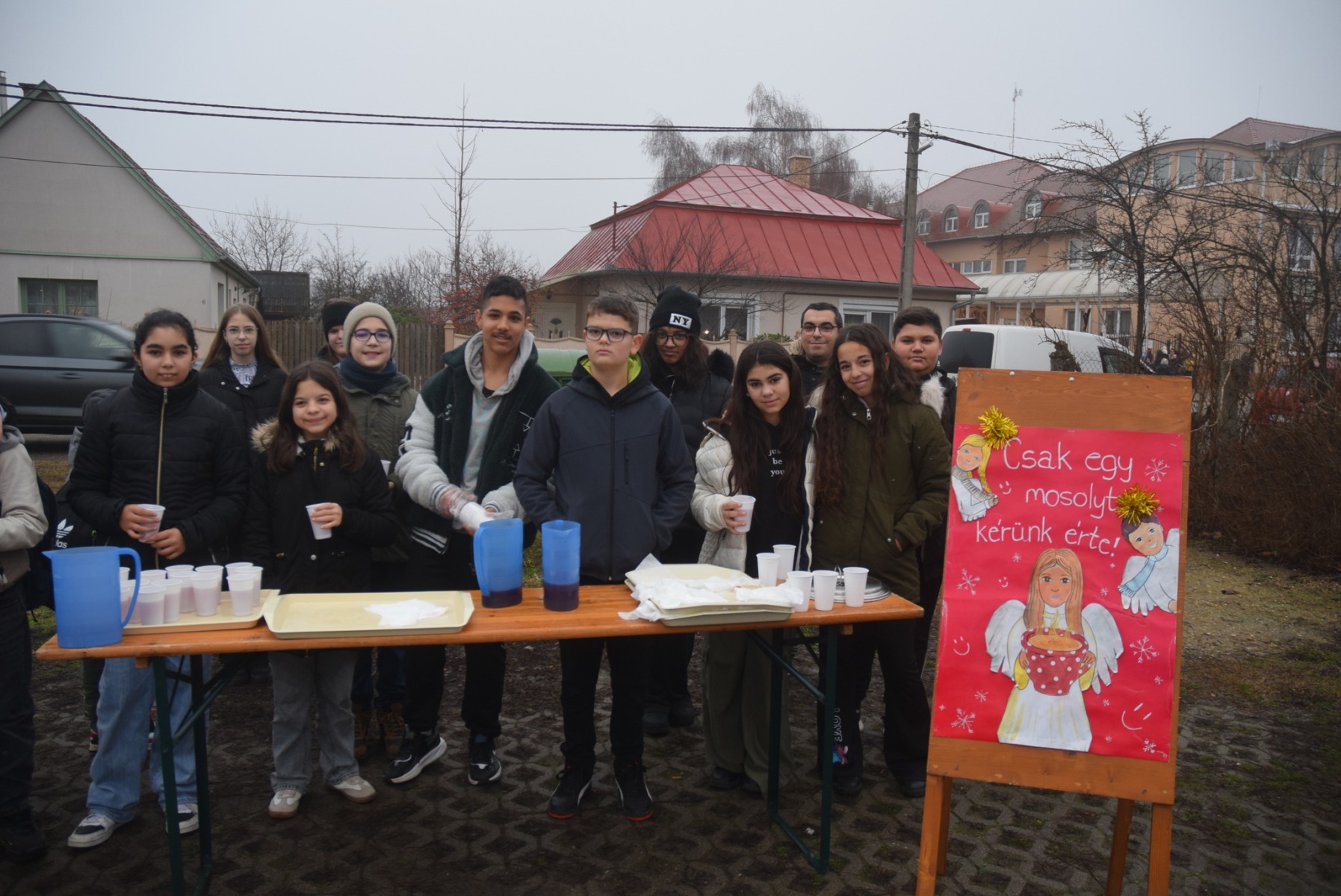 A mai reggelen ismét csak egy mosolyt kértek a Szent Piroska diákjai azért a reggeli figyelmességért, amivel évek óta meglepik a községi piac árusait, vásárlóit. A zsíros kenyér és a gőzölgő tea mosolyt csal minden didergő arcra, és melegséget hoz a szívekbe. A diákok pedig évről-évre jobban élvezik az adventi jócselekedetet. A mai reggelen Székely Bence tanár úr felügyelete mellett a 6. évfolyam vett részt a jótékonykodó akcióban. KGYZE