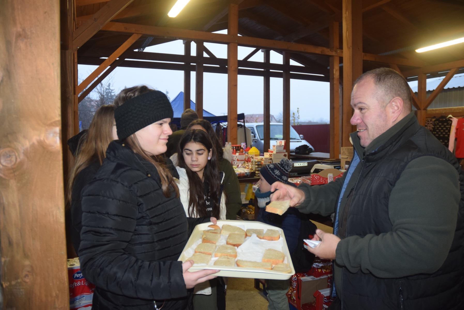 A mai reggelen ismét csak egy mosolyt kértek a Szent Piroska diákjai azért a reggeli figyelmességért, amivel évek óta meglepik a községi piac árusait, vásárlóit. A zsíros kenyér és a gőzölgő tea mosolyt csal minden didergő arcra, és melegséget hoz a szívekbe. A diákok pedig évről-évre jobban élvezik az adventi jócselekedetet. A mai reggelen Székely Bence tanár úr felügyelete mellett a 6. évfolyam vett részt a jótékonykodó akcióban. KGYZE