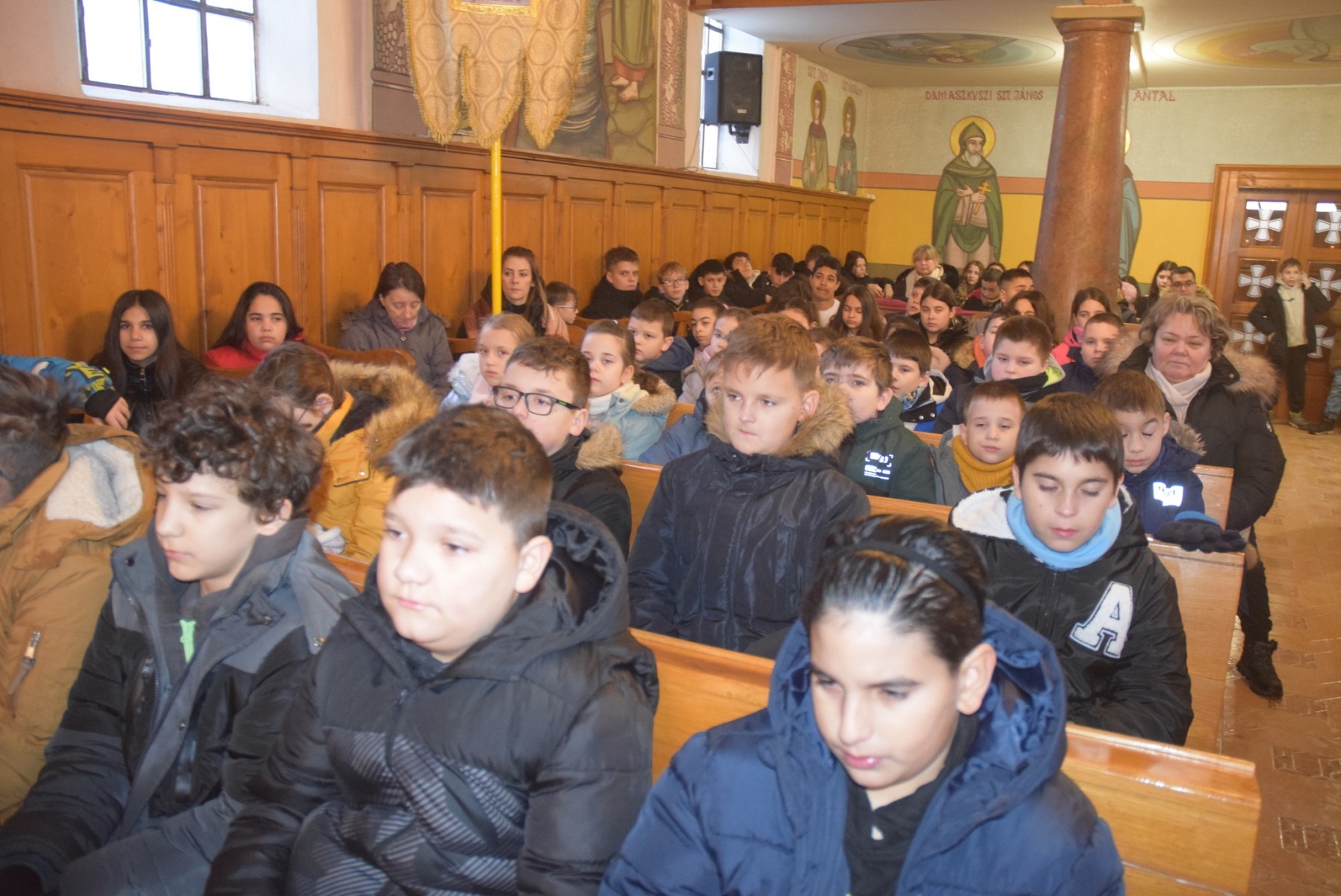 Január 6-án, vízkereszt ünnepén a görögkatolikus templomban szent liturgiával indult a nap a Szent Piroska diákjai és pedagógusai számára. Az evangéliumi szakasz olvasása után Elek atya az ünnep tartalmáról és elnevezéséről beszélt a diákoknak. Elmondta, hogy ez az a nap, amikor Jézus János által megkeresztelkedett a Jordán folyóban, majd megjelent a Szentlélek galamb képében, és felhangzott egy hang, az Úr hangja is. Így kapták meg az emberek az üzenetet, hogy a szentháromságban egy Isten van. Elek atya beszélt még a diákoknak az ünnep többféle elnevezéséről is, miszerint a vízkereszt népi elnevezés, azon kívül pedig még ötféleképpen említik január 6-át, az év első katolikus ünnepét. A hivatalos neve: Jézus Krisztus megkeresztelkedése, de ismert az epifánia, az úrjelenés, valamint a teofánia, vagyis az Istenjelenés elnevezés is. KGYZE