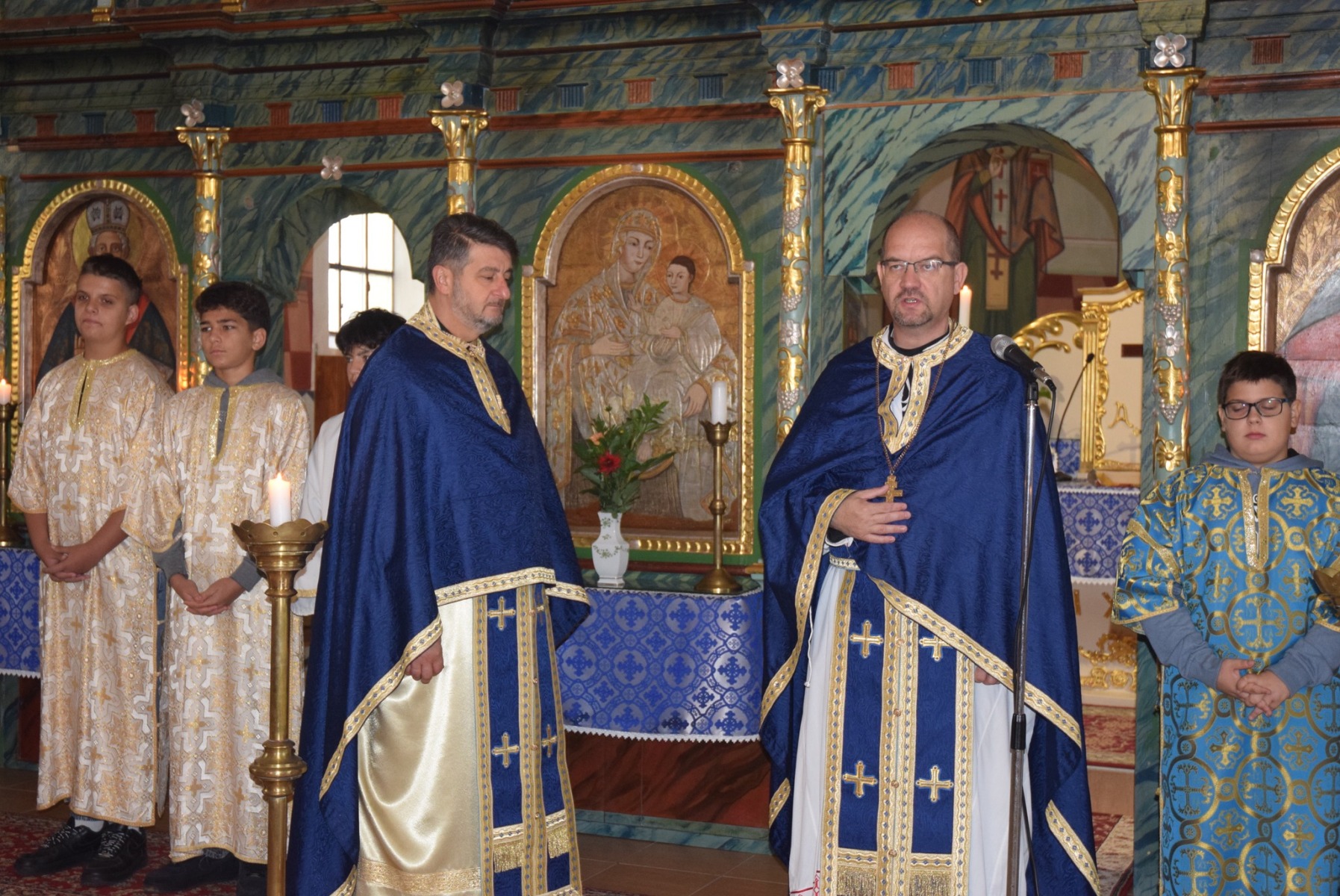 A meglehetősen hűvös idő ellenére két jeles esemény is melengette szívünket a mai napon. Az Istenszülő Oltalmára felszentelt görögkatolikus templomunk címünnepét, valamint a teljesen megújult, európai színvonalú játszó -és játéktérrel megújult iskolaudvart is birtokba vehették tanulóink. Az egyházi ünnepre való tekintettel a napot a görögkatolikus templomban kezdtük, ahol dr. Seszták István főhelynök atya, Terdik János pasztorális helynök atya és dr. Nyirán János diakónus vezették a liturgiát. Terdik János atya prédikációjában a címünnep történetéről beszélt, amikor Mária kiterítette palástját a fenyegetett nép fölé, ezzel megóvta őket az ellen-ségtől. – Mi, mai emberek is vágyunk Mária oltalmára, mint a kisgyermek az édesanya bizton-ságot nyújtó közelségére. Oltalmat és segítséget kérünk, ugyanakkor adhatunk is az arra rászo-rulóknak. Ilyenkor érezhetjük, nem vagyunk egyedül. Hiszen mi is oltalmat kapunk Isten által Máriától. A Szűzanya azért jön el közénk, mert szeret bennünket, mert fontosak vagyunk szá-mára. Mindenkinek azt kívánom, hogy ne csak most, de minden nap érezze meg Mária oltal-mazó palástján keresztül az Isten szeretetét – hangzottak János atya szavai.